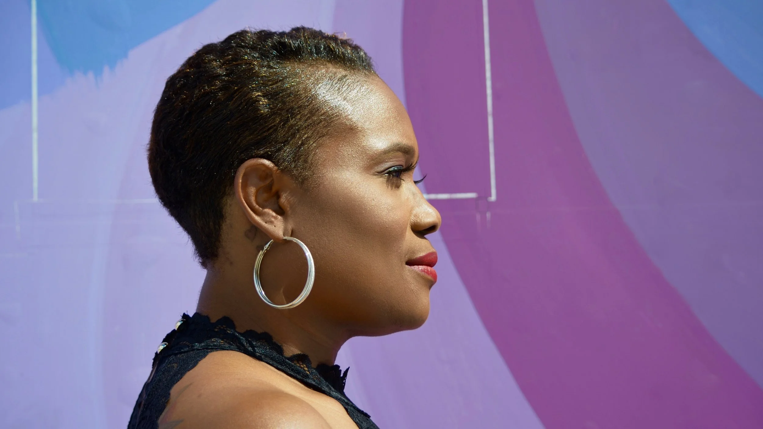 Michelle waiting under the rain in Daley Plaza, Chicago, next to “The Picasso”. “I think we look alike!”